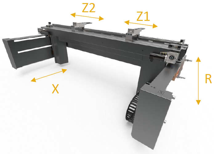 - Čtyřosý zadní doraz X/R/Z1+Z2 ve standardní výbavě